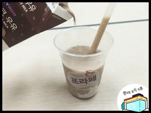 Paglalarawan ng Content: a cup of frappe milk is being poured into a cup with a straw