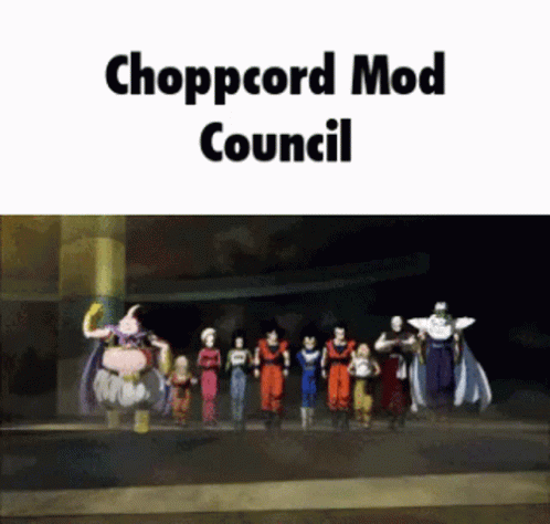 Paglalarawan ng Content: a group of cartoon characters are standing in a line with the words chopcord mod council above them