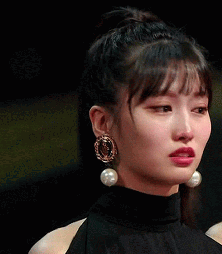 Paglalarawan ng Content: a close up of a woman wearing pearl earrings and a black dress .