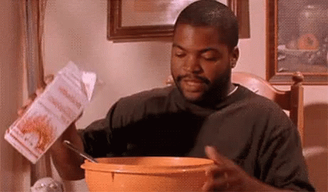 Paglalarawan ng Content: a man is pouring cereal into a bowl while holding a carton of cereal in his hand .