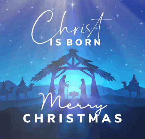 Paglalarawan ng Content: a nativity scene with the words christ is born merry christmas below it