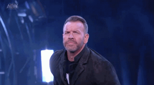 Paglalarawan ng Content: a man in a black suit is standing in front of a aew logo