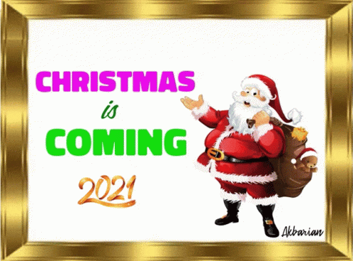 Paglalarawan ng Content: a framed picture of santa claus says christmas is coming in 2021