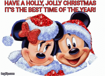 Paglalarawan ng Content: a picture of mickey mouse and minnie mouse with the caption " have a holly jolly christmas "