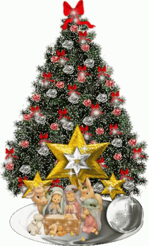 Paglalarawan ng Content: a nativity scene under a christmas tree with a gold star