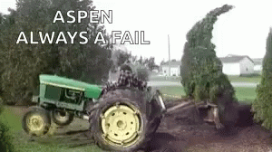 Paglalarawan ng Content: a green john deere tractor is stuck in the dirt with the words " aspen always a fail " above it