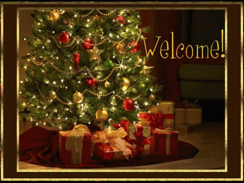 Paglalarawan ng Content: a picture of a christmas tree with gifts underneath it and the words welcome
