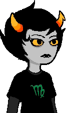 Paglalarawan ng Content: a pixel art drawing of a girl with horns wearing a black shirt with the letter m on it .