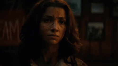 Paglalarawan ng Content: a close up of a woman 's face in a dark room with a blurred background .