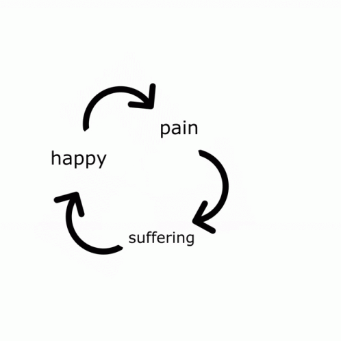 Paglalarawan ng Content: a circle with the words happy pain and suffering in the middle