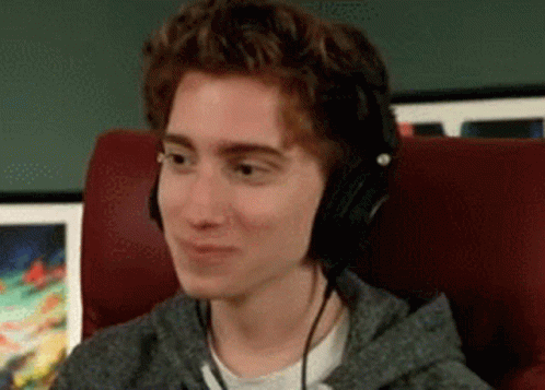Paglalarawan ng Content: a young man wearing headphones is sitting in a chair and making a funny face .