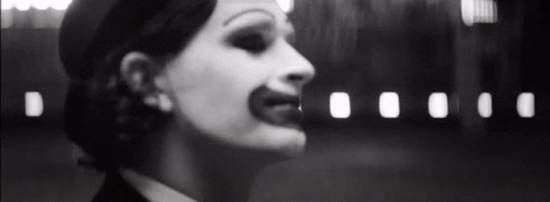 Paglalarawan ng Content: a black and white photo of a woman with a clown face