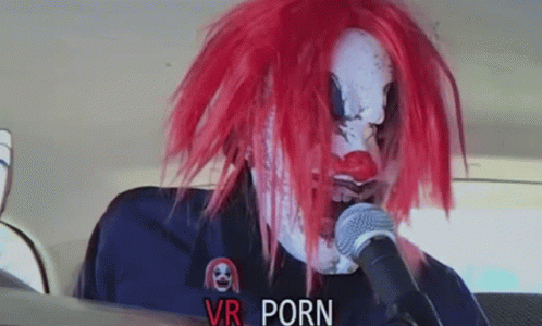 Paglalarawan ng Content: a clown with red hair is singing into a microphone with the words vr porn above him