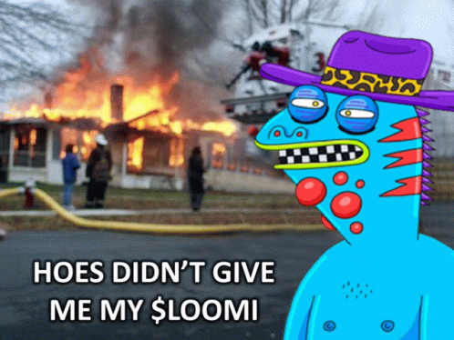 Paglalarawan ng Content: a cartoon character says hoes didn 't give me my $ loomi in front of a burning house