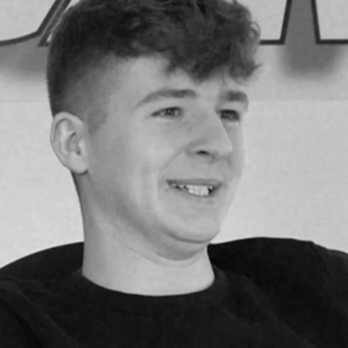 Paglalarawan ng Content: a young man is smiling in a black and white photo