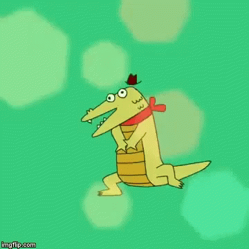 Paglalarawan ng Content: a cartoon crocodile wearing glasses and a red scarf is dancing .