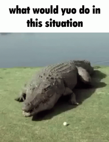 Paglalarawan ng Content: a picture of a crocodile with the caption what would yuo do in this situation .