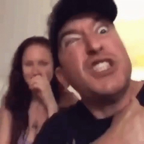 Paglalarawan ng Content: a man is making a funny face while a woman laughs in the background .