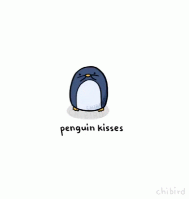 Paglalarawan ng Content: a penguin with a heart on its head and the words " penguin kisses "