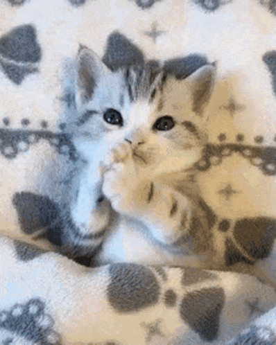 Paglalarawan ng Content: a kitten is laying on a blanket with its paws up