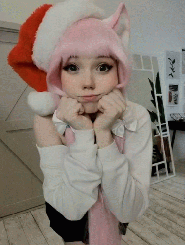 Paglalarawan ng Content: a girl with pink hair and a santa hat makes a funny face