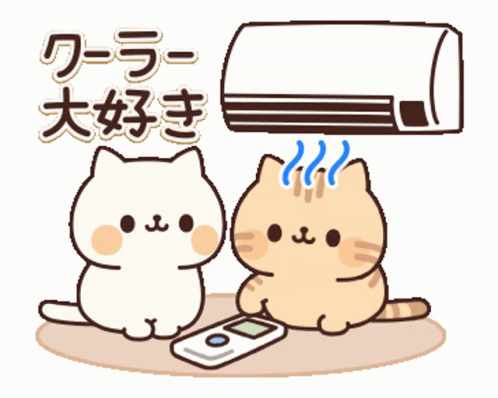 Paglalarawan ng Content: two cats are sitting next to each other under an air conditioner and a remote control