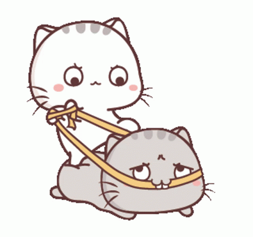 Paglalarawan ng Content: a cartoon cat is pulling another cat on a leash .