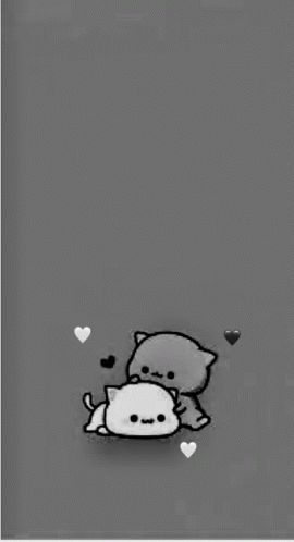 Paglalarawan ng Content: a black and white drawing of two cats on a gray background with hearts .