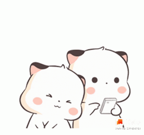 Paglalarawan ng Content: two cartoon cats are standing next to each other looking at a phone .