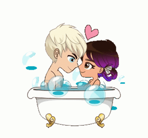 Paglalarawan ng Content: a boy and a girl are kissing in a bathtub with bubbles