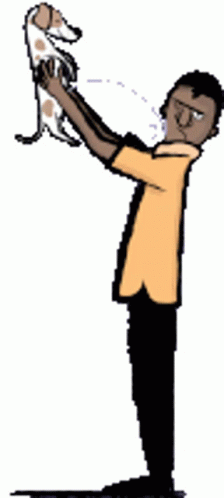 Paglalarawan ng Content: a cartoon of a man holding a dog up in the air