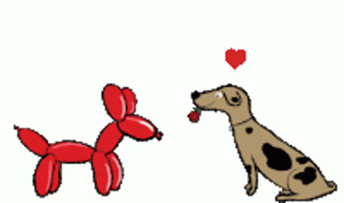 Paglalarawan ng Content: a cartoon of a dog blowing a kiss to another dog made of balloons
