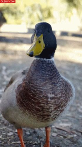 Paglalarawan ng Content: a close up of a duck with a yellow beak and the words olegif.com on the bottom right