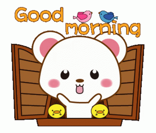 Paglalarawan ng Content: a cartoon bear says good morning with birds on it