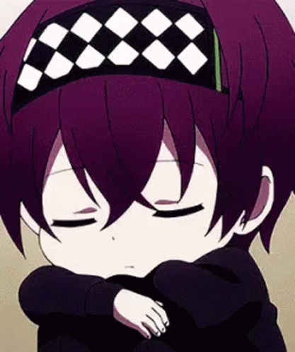 Paglalarawan ng Content: a close up of a person with purple hair wearing a headband and sleeping .