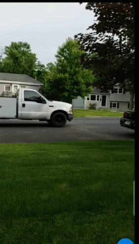 Paglalarawan ng Content: a white truck is parked on the side of the road next to a house