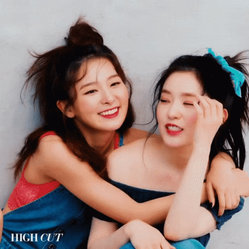 Paglalarawan ng Content: two girls are hugging each other and the words high cut are on the bottom right
