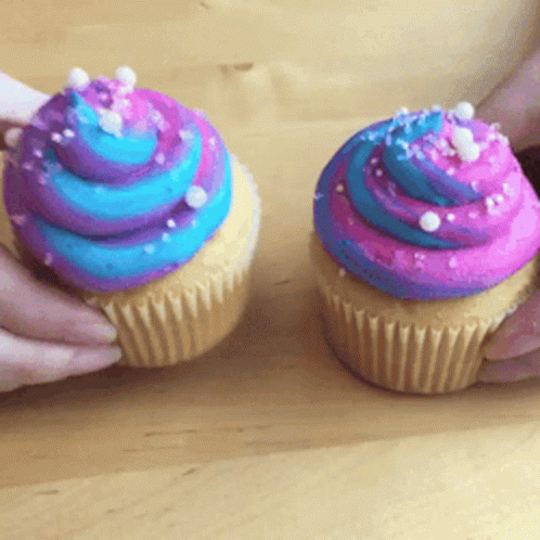 Paglalarawan ng Content: two cupcakes with purple and blue frosting and sprinkles on them