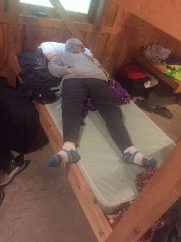 Paglalarawan ng Content: a person laying on a bed with their feet crossed