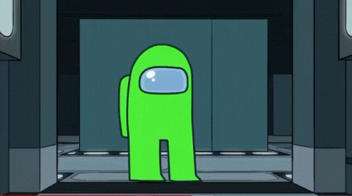 Paglalarawan ng Content: a green among us character is standing in a dark room .