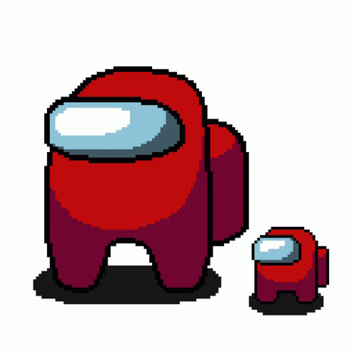 Paglalarawan ng Content: a pixel art drawing of a yellow among us character and its baby .