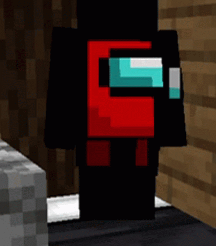 Paglalarawan ng Content: a red among us character is standing in front of a wooden wall
