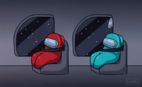 Paglalarawan ng Content: a red and a blue among us character are sitting next to each other in space