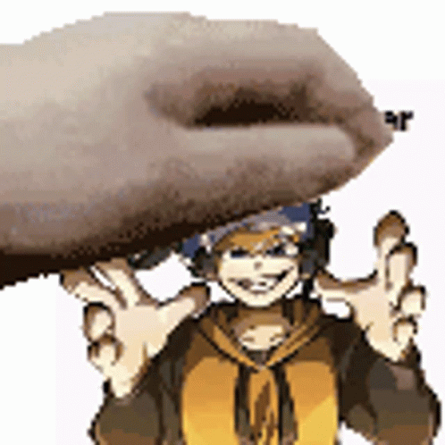 Paglalarawan ng Content: a hand is holding a cartoon character 's head .