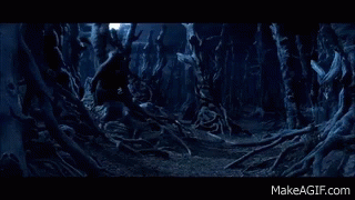 Paglalarawan ng Content: a dark forest with lots of trees and roots