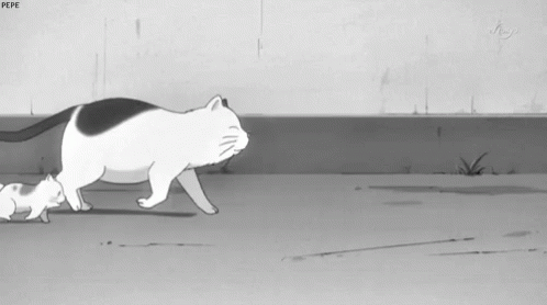 Paglalarawan ng Content: a black and white drawing of a cat and a kitten with pepe written on the bottom right