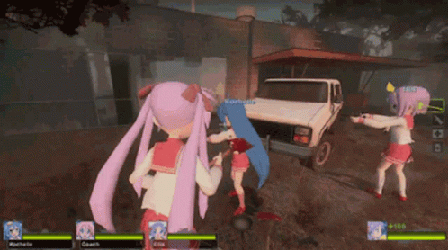 Paglalarawan ng Content: a screenshot of a video game shows a girl with blue hair named kocherie
