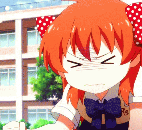 Paglalarawan ng Content: a girl with red hair and a bow on her head is making an angry face