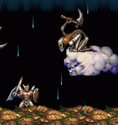 Paglalarawan ng Content: a pixel art drawing of a warrior fighting a monster