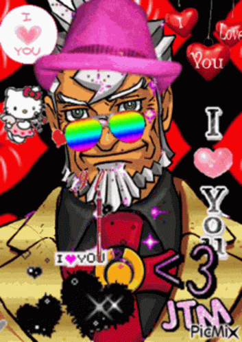 Paglalarawan ng Content: a cartoon of a man wearing sunglasses and a purple hat says i love you 3 jtn